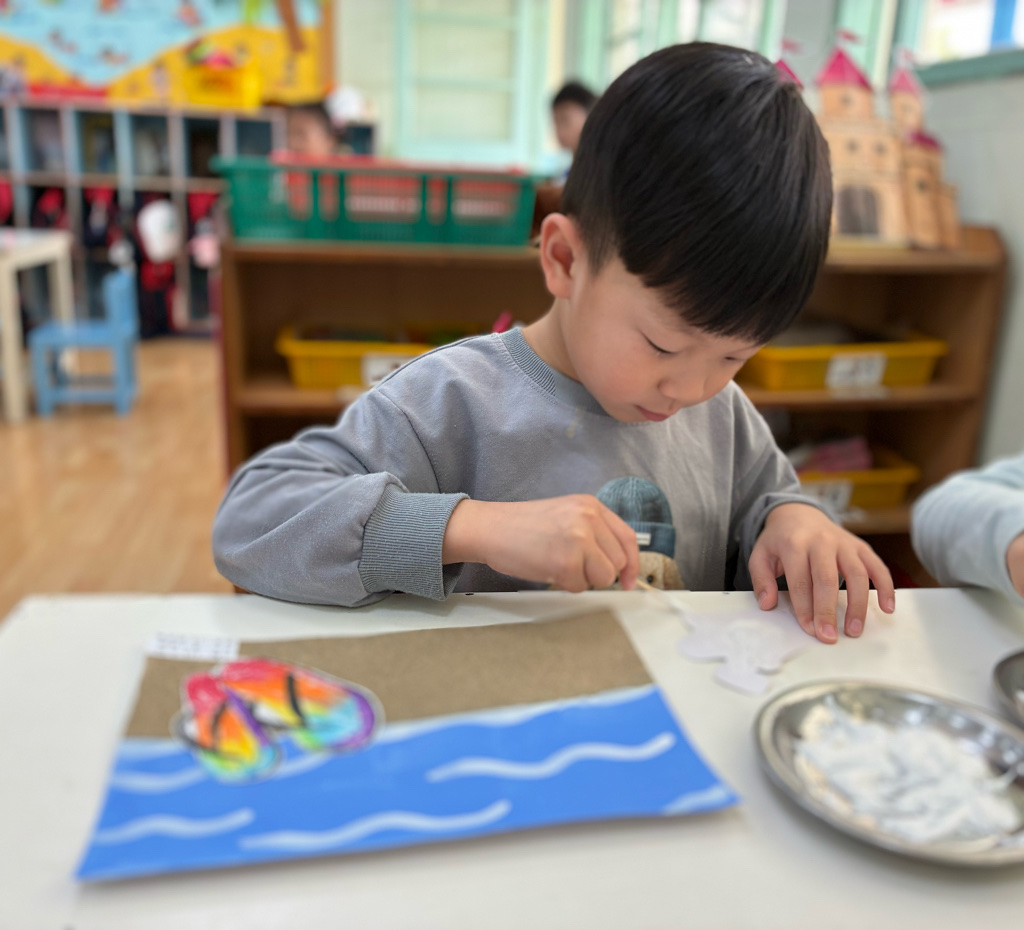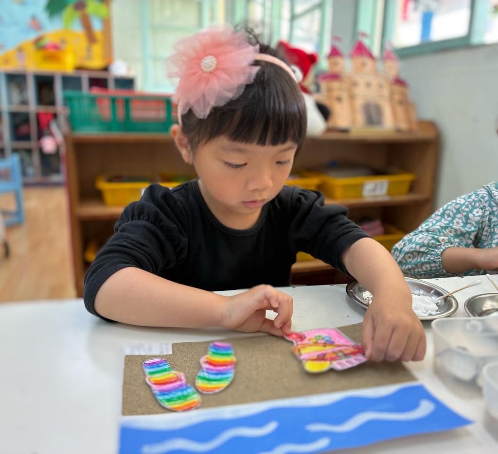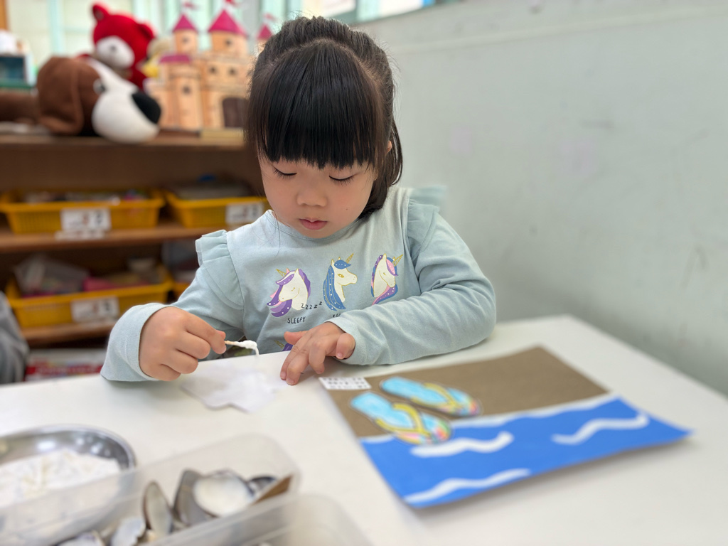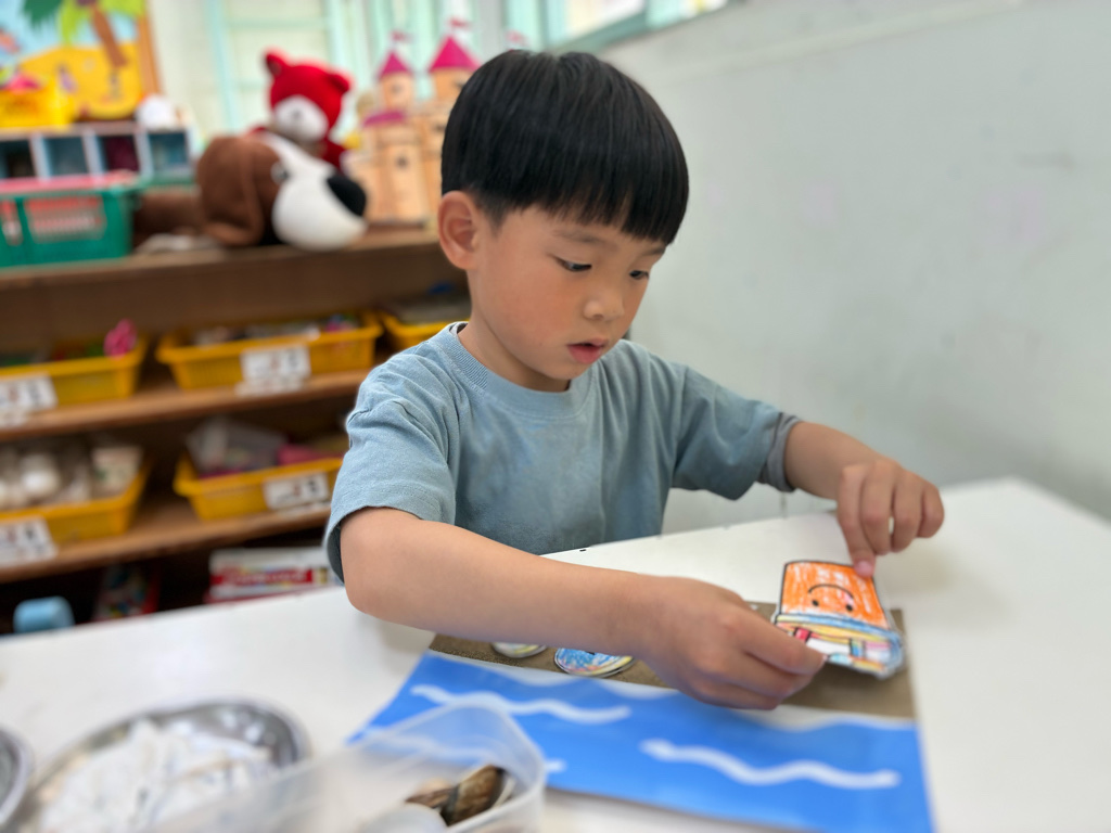 創作:夏日遊憩3(黏貼玩沙工具與貝殼)